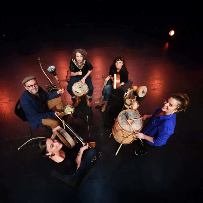 Ce moment singulier s’inspire du répertoire du spectacle Roge, tout en s’en écartant. Il ouvre un espace d’essai et de liberté, où l’on ose les bouts de texte, les ébauches de mélodie, les improvisations nées sur le fil. Un instant acoustique et intime, où les timbres, les langues et les émotions dialoguent à voix nue avec le public.